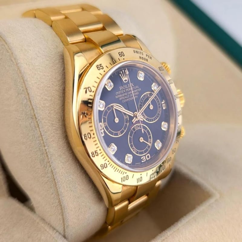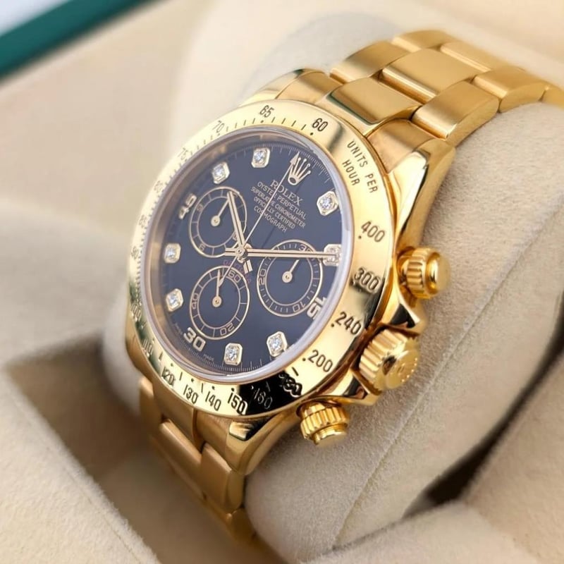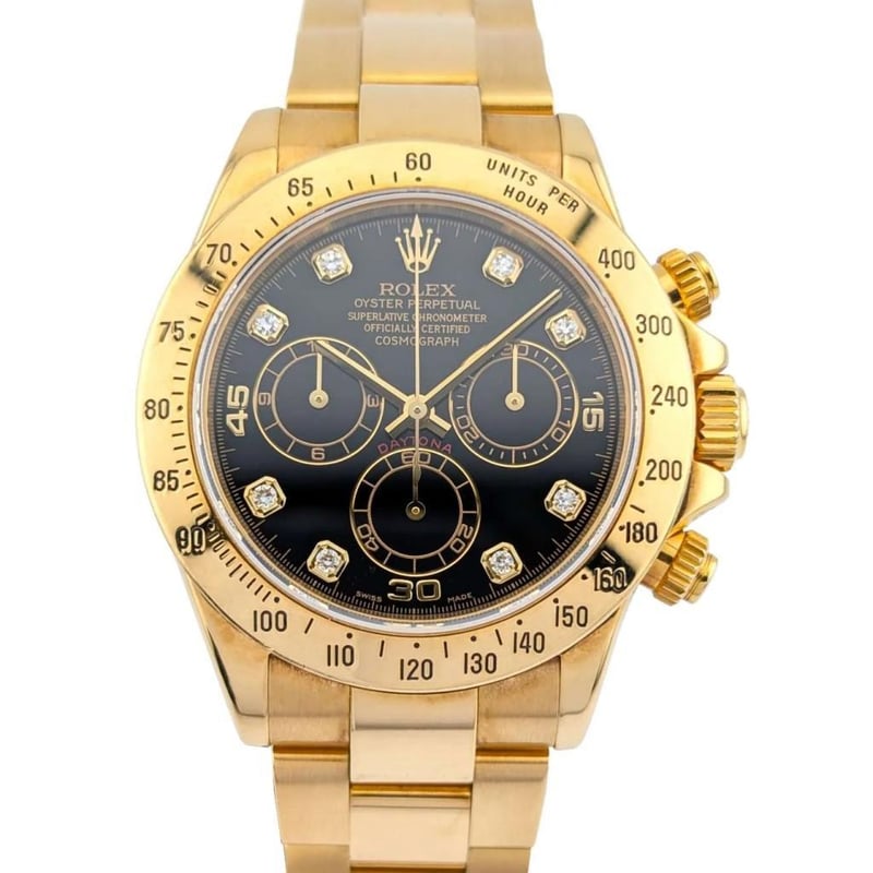 ROLEX 116528 DAYTONA 18K YELLOW GOLD DIAMONDS 40MM 2005 BOX & PAPERS