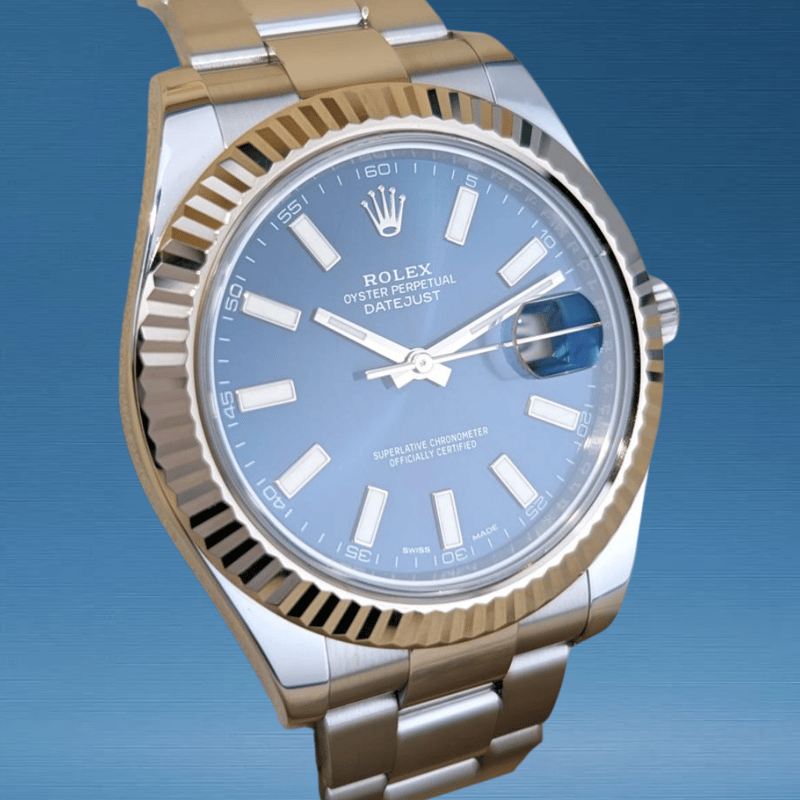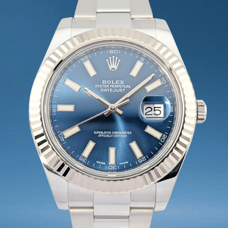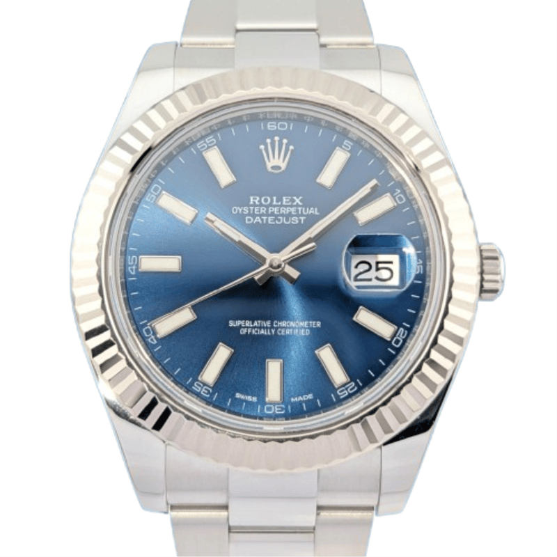 ROLEX 116334 DATEJUST II BLUE INDEX DIAL 41MM WXO & COA Brand: Rolex Model Number: DATEJUST II Reference Number: 116234 Production Year: UNKOWN Dial: BLUE Case: STEEL Case Size: 41MM Bracelet: STEEL Movement: AUTOMATIC Box: Not IncludedPapers: Not Included Condition: Good - Refer to Images