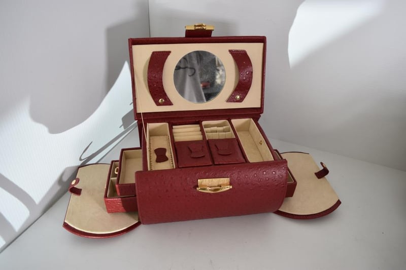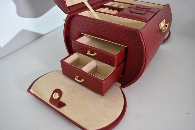 Vintage leather red multi compartment jewellery box