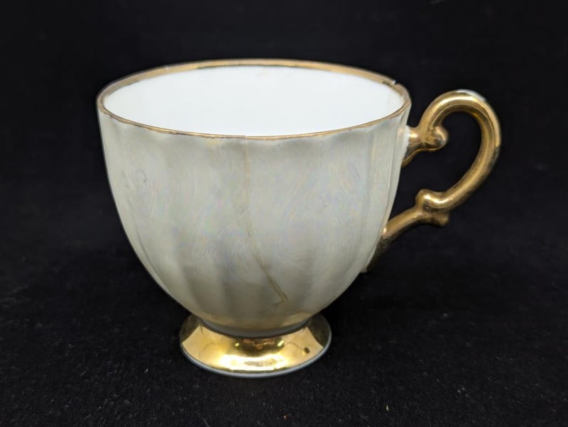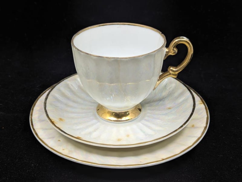 Made In Japan, Includes Teacup, Saucer And Base Plate, Items Feature Iridescent Style Exterior Design