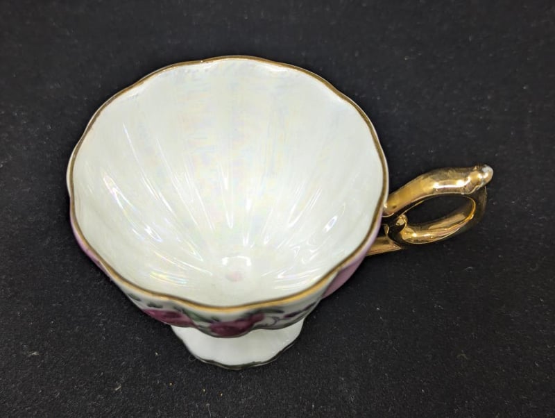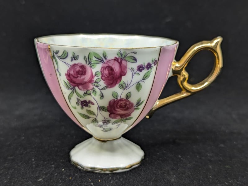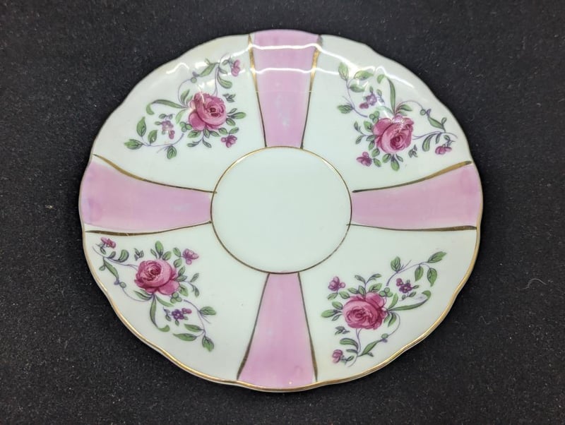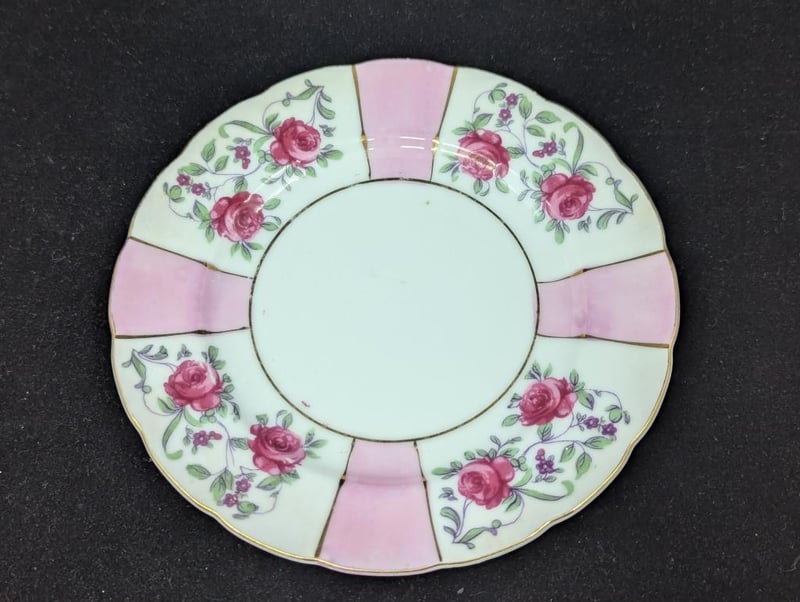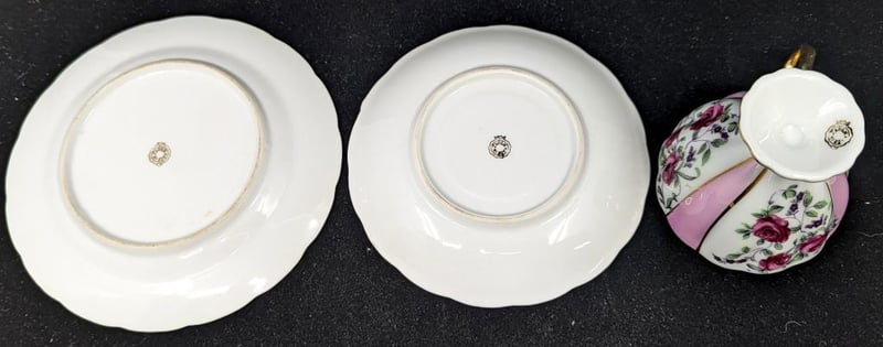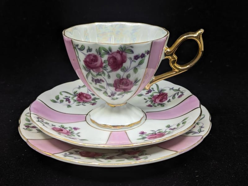 Made In Japan, Includes Teacup, Saucer And Base Plate, Items Feature Pink Lines With Floral Design