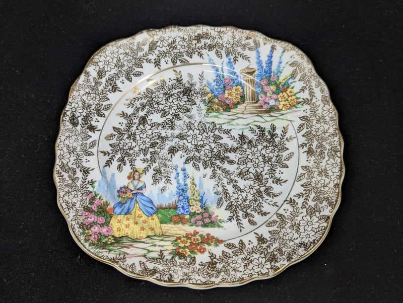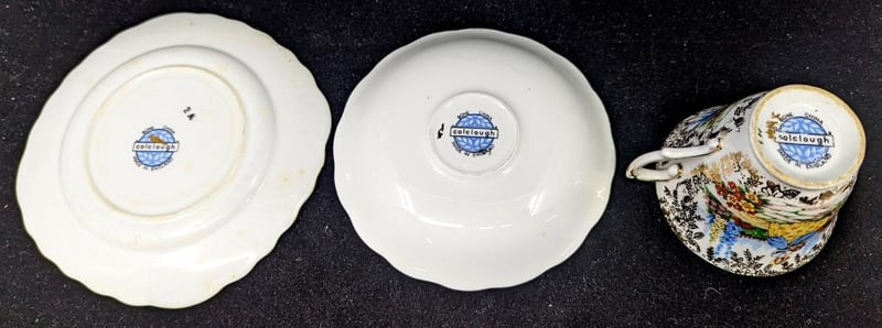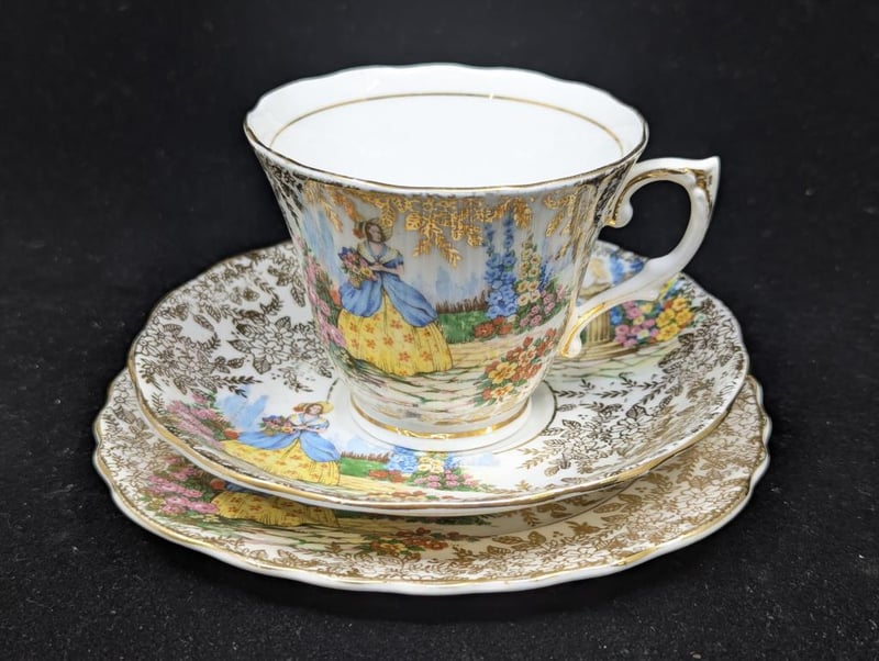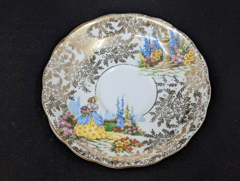 Includes Teacup, Saucer And Base Plate, Items Feature Faux Gold Floral Pattern And Classical Scenes