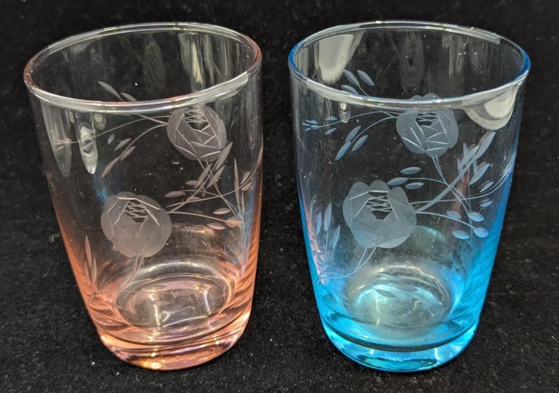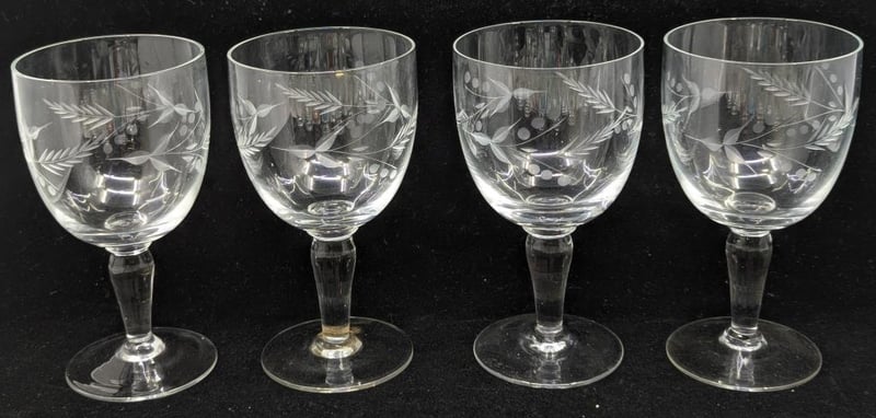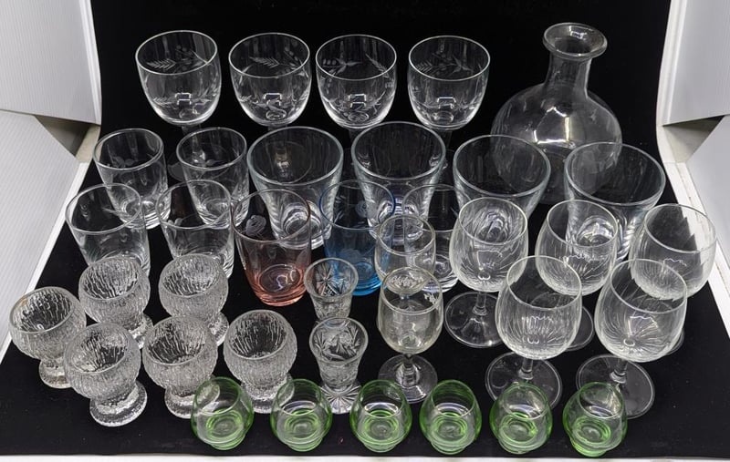Various Styles Of Glasses Including Frosted Designs And Vase
