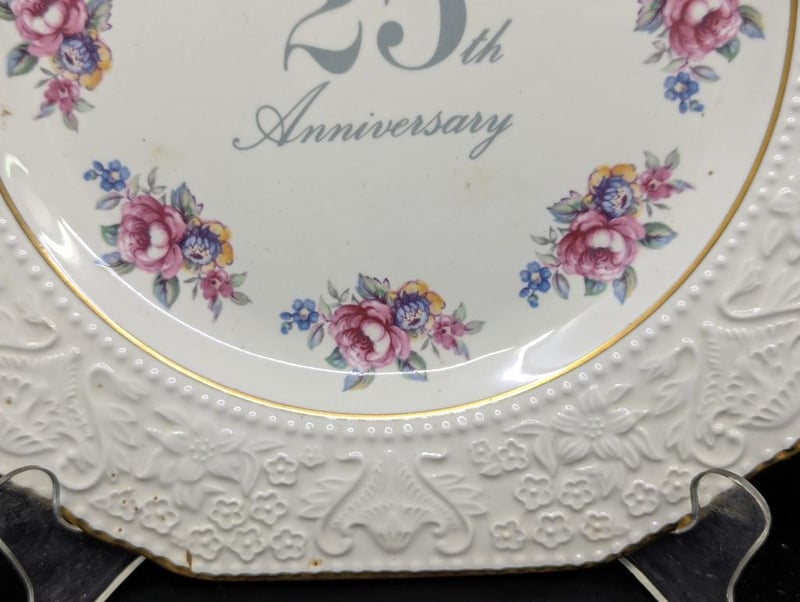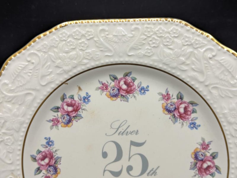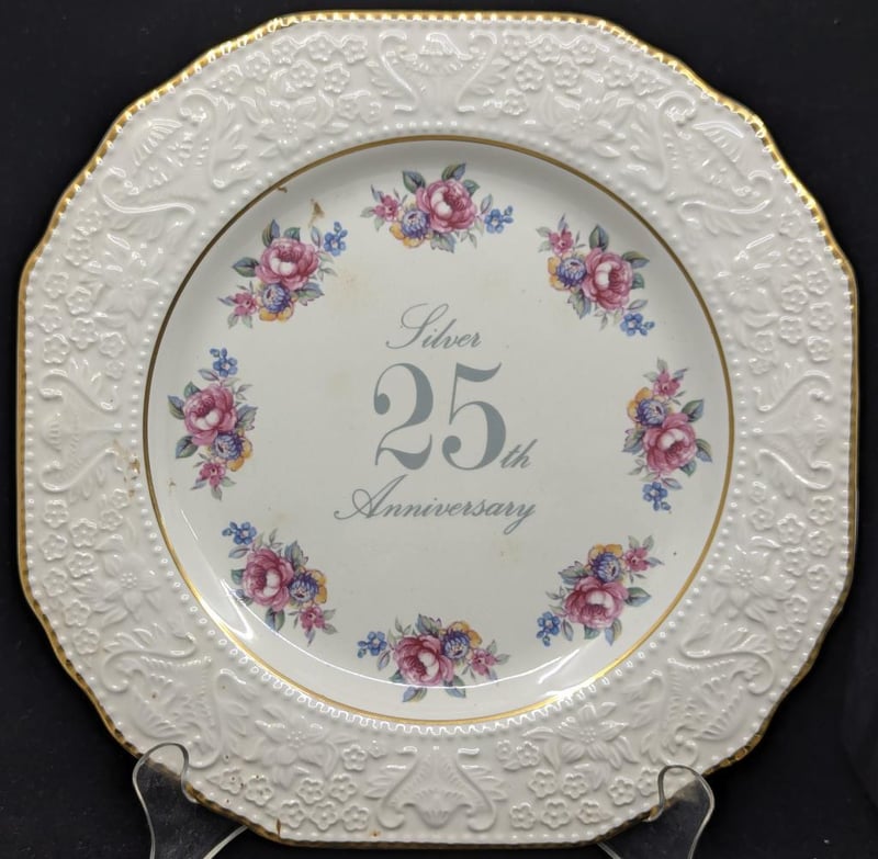 PRINKNASH POTTERY 'SILVER 25TH ANNIVERSARY' COMMEMORATIVE DECORATIVE PLATE AND LAND ROVER MUG