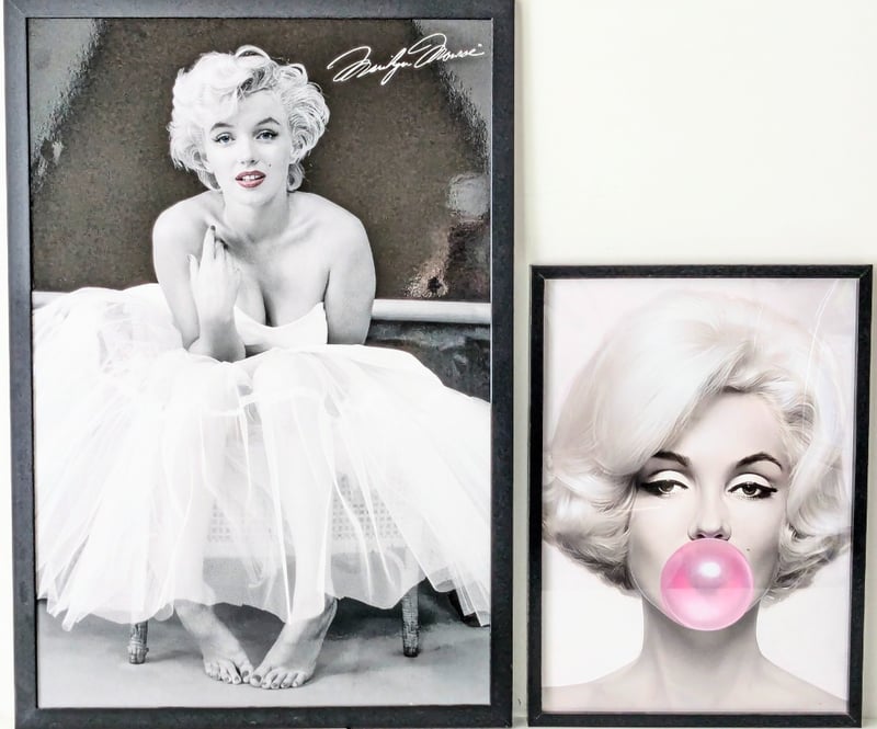 FRAMED BLACK AND WHITE PORTRAITS FEATURING MARILYN MONROE, QTY 2