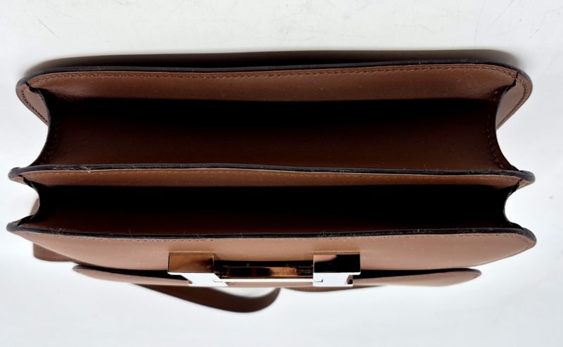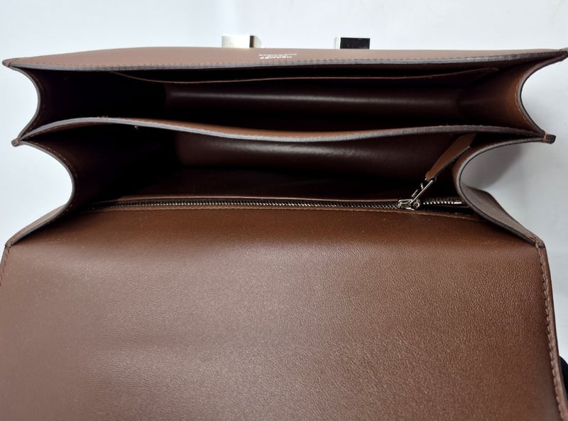 LEATHER INTERIOR WITH A ZIPPER POCKET AND DIVIDED MAIN COMPARTMENT