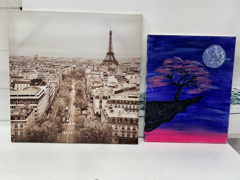 Including 1 x Ocean Print On Canvas Frame, 1 x Paris Print On Canvas Frame And 1 x Original Acrylic Painting On Canvas.
