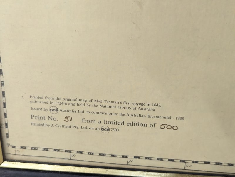 Edition Number: 51 / 500'Kaart Der Reyse Van Abel Tasman Volgens Fyn Evgen Opftel'