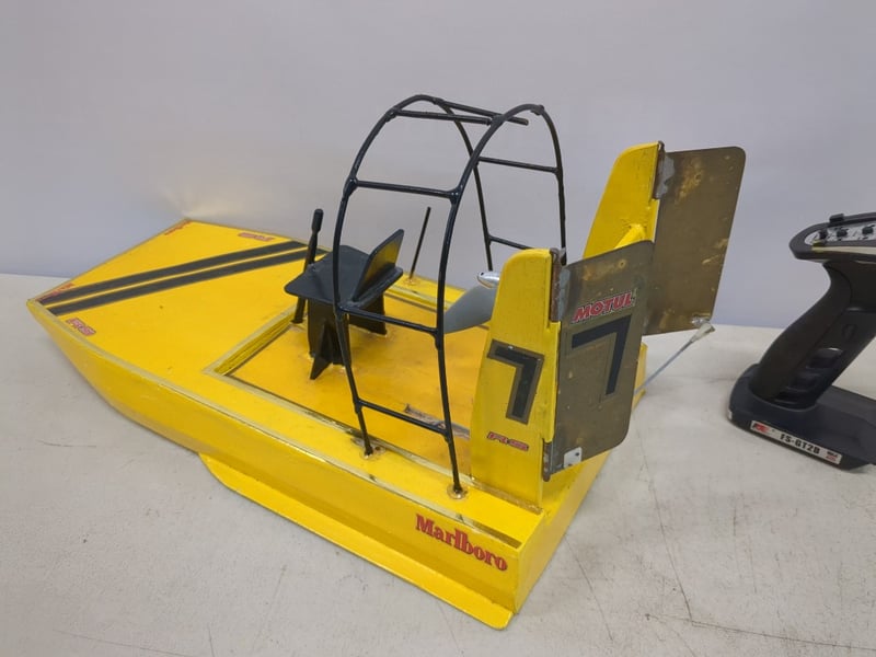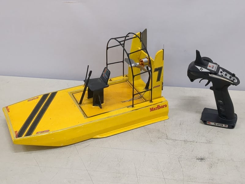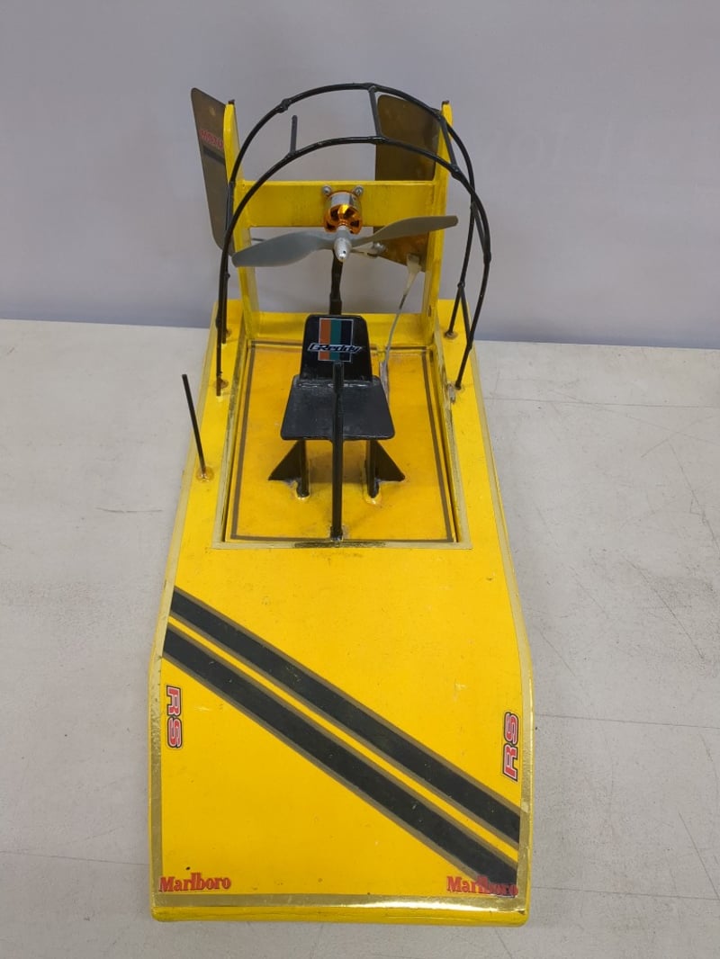 TIMBER HULL RC AIRBOAT Item Size: Height: 28cm, Width: 50cm, Depth: 25cm, Weight: 1Kg Includes Battery And Remote 582944+2