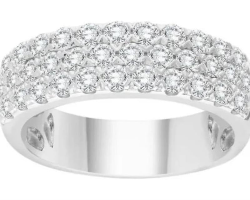9K White Gold 1.00Ct F Vs Lab Diamond 3 Row Pave Ring