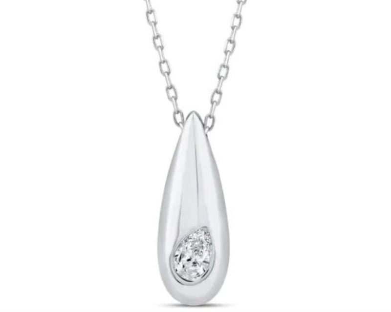9K WHITE GOLD 0.12CT F VS LAB DIAMOND PEAR NECKLACE 40-45CM
