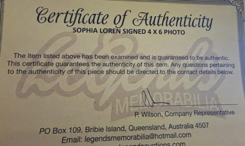 Sophia Loren, The Italian Screen Legend Personally Signed 6 X 4 Photo. The Item Is Accompanied By A Certificate Of Authenticity.