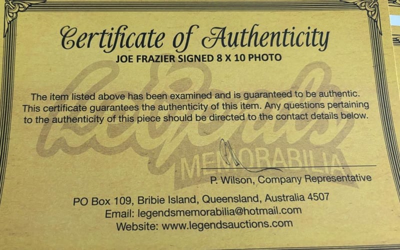 Joe Frazier (D 2013) Personally Signed 8 X 10 Photo. The Item Is Accompanied By A Certificate Of Authenticity.
