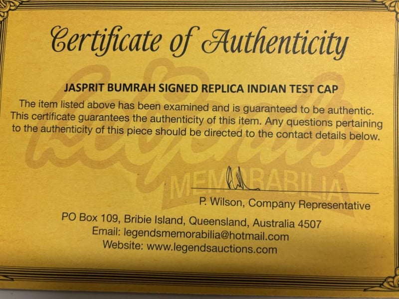 World Number 1 Active Bowler Jasprit Bumrah Personally Signed Replica Indian Test Cap. The Item Is Accompanied By A Certificate Of Authenticity.