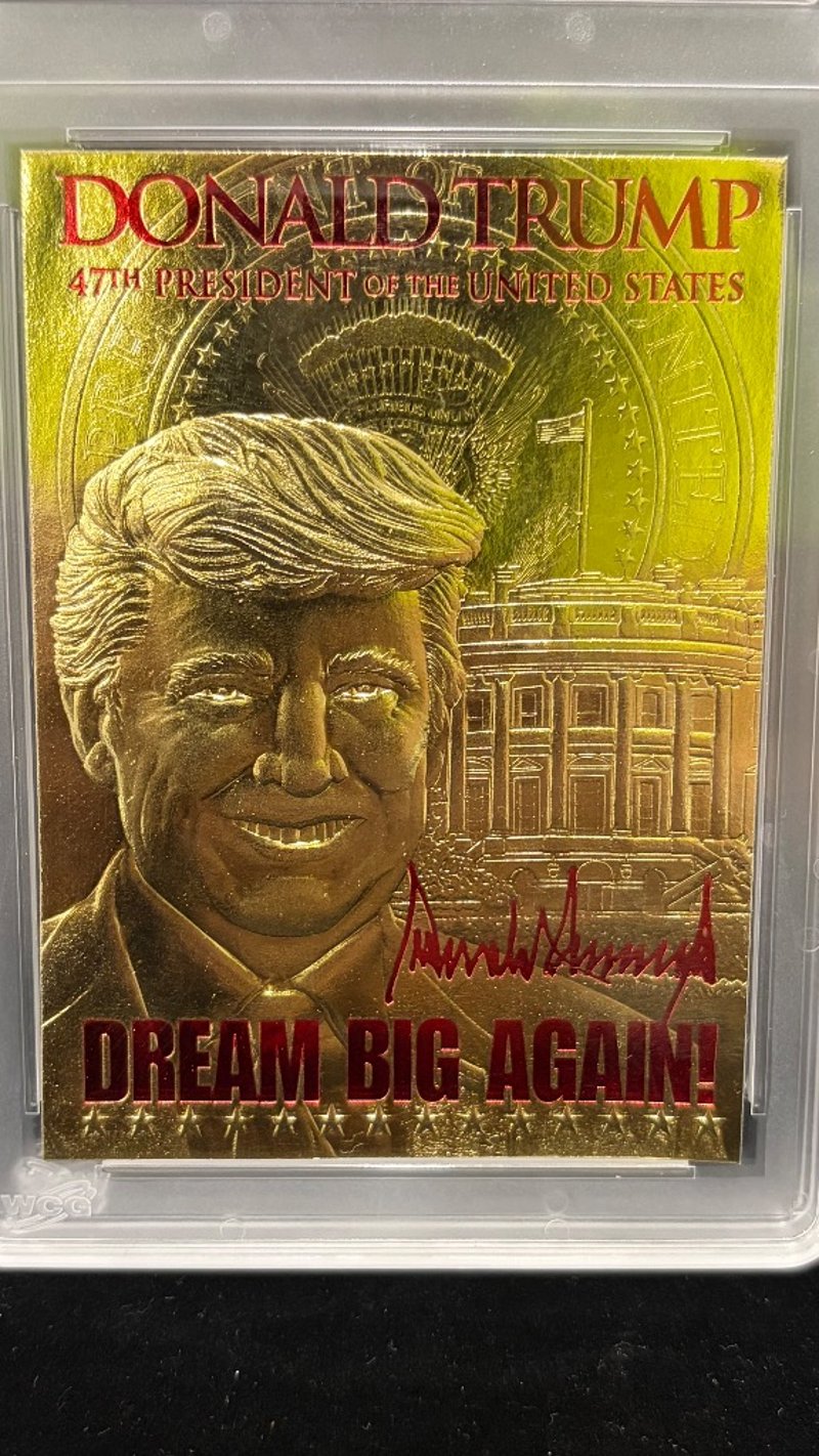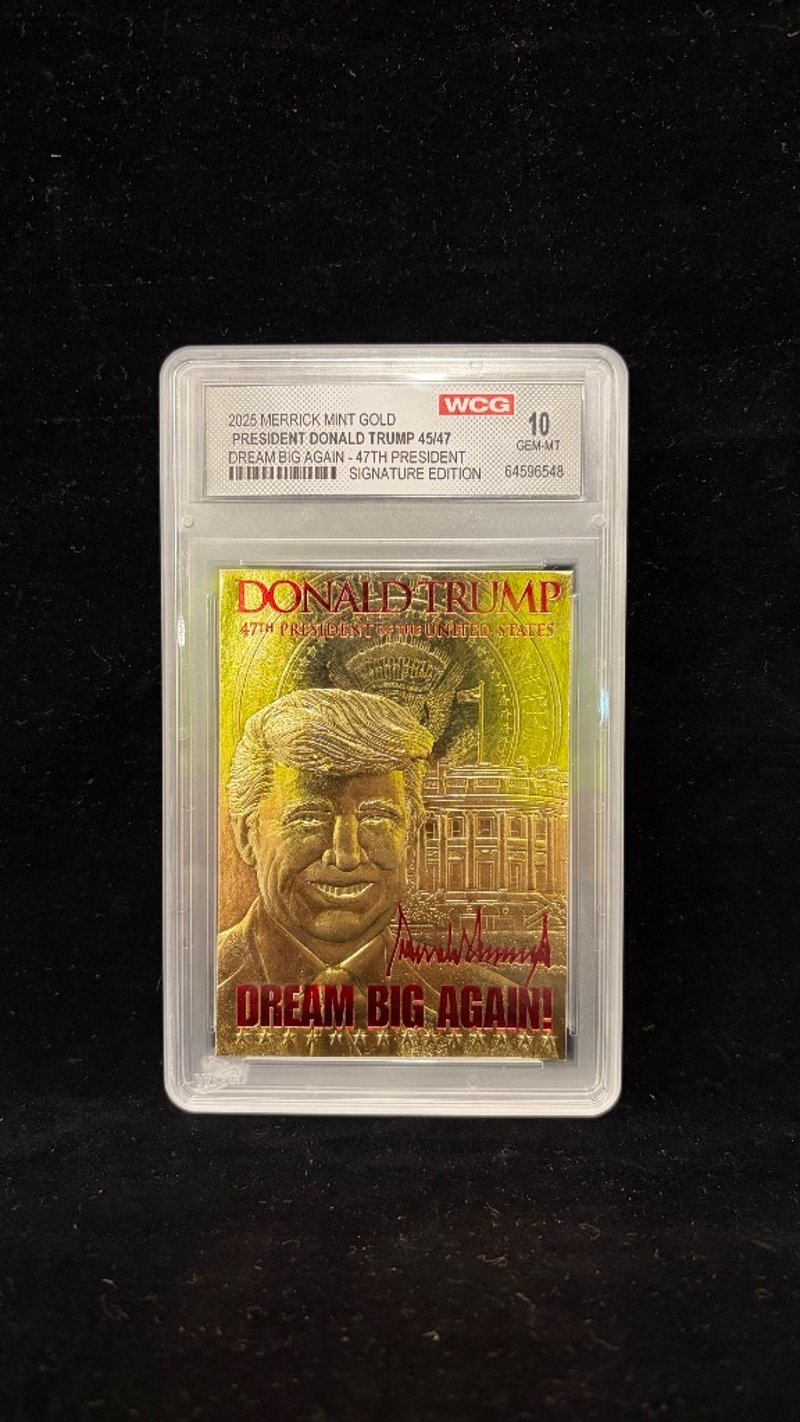2025 MERRICK MINT GOLD, PRESIDENT DONALD TRUMP 45/47, DREAM BIG AGAIN - 47TH PRESIDENT, SIGNATURE EDITION, 10 GEM-MT 64596548. Item Size: Height: 14cm, Width: 8.5cm, Depth: 1cm, Weight: 0.1Kg Condition: Good - Refer To Images 582957+12