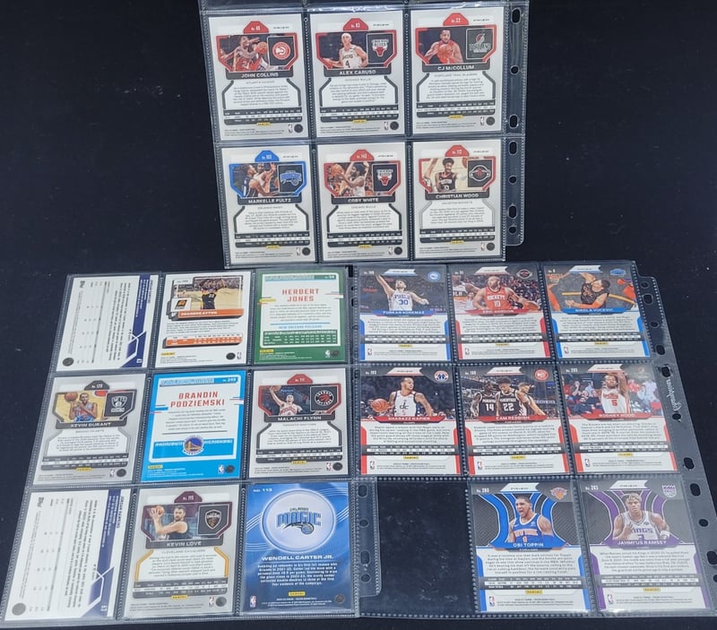 COLLECTION OF NBA BASKETBALL TRADING CARDS Includes: Panini Prizm, Donruss Malachi Flynn, Jordan Hawkins, Alex Caruso, Cam Reddish And More Condition: Good - Refer To Images 587970+3
