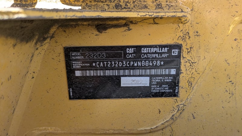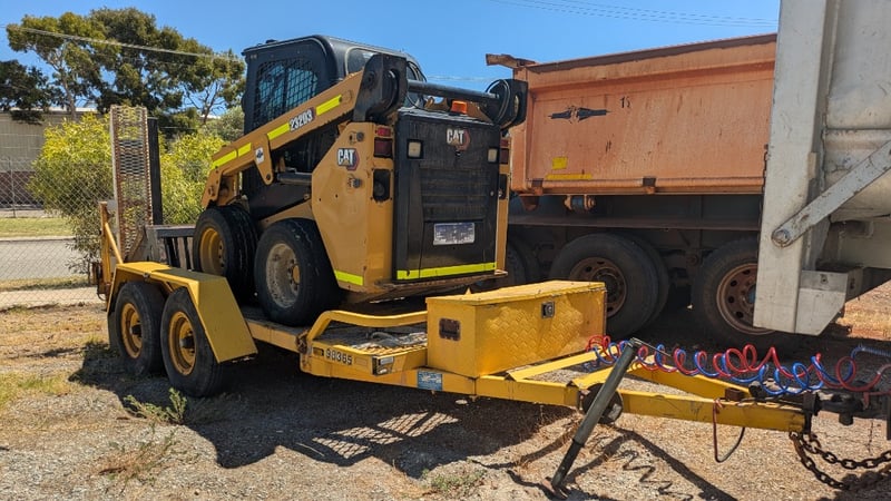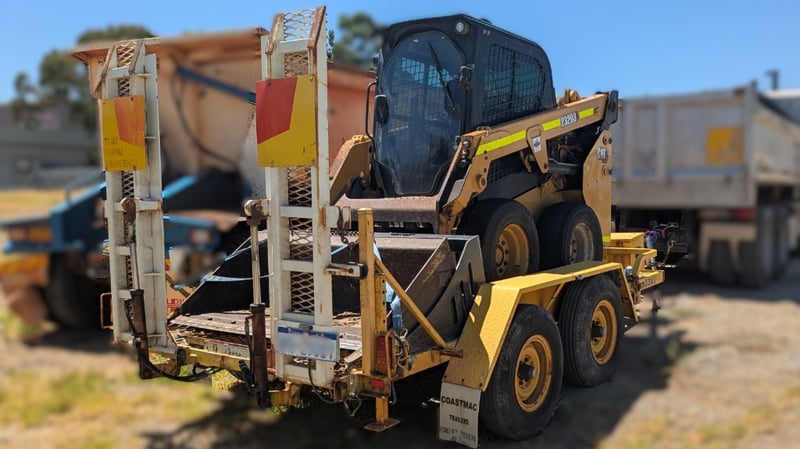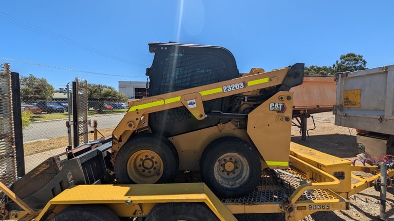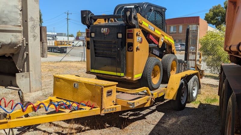 2022 Cat 232D3 Bobcat with Trailer. Year: 2022 Make: Caterpillar Model Name & Number: 232D3 Configuration: Wheeled Skid-Steer Engine Details: Cat C2.2 CRDI 2.2L Turbocharged Diesel Engine Odometer Indicated: 1238 hrs Colour: Yellow P.I.N.: CAT232D3CPWN00498 Comments / Condition: Factory Original Condition. Air Conditioning, Radio, Fire Extinguisher, work lights, Isolators, Cat bucket, Rock bucket, Reverse camera. ON A TRAILER Year: 2012 Make: Coastal Machinery Model: VEHCRR Body: Trailer Colour: Yellow Configuration: Suspension: Description: With Hydraulic Ramps. Chassis No.: 6U9VSS00000018516 ATM: 4500kg Tare: 1040kg Key # CTM7