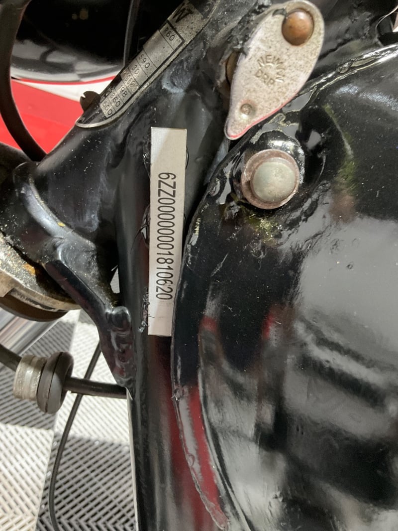 Matching numbers are confirmed (VIN 1810620, Engine VG1810620). The shaft drive, 4-speed gearbox, and drum brakes front and rear are all present and correct. The chrome mufflers are genuinely excellent and the tank badges are intact.