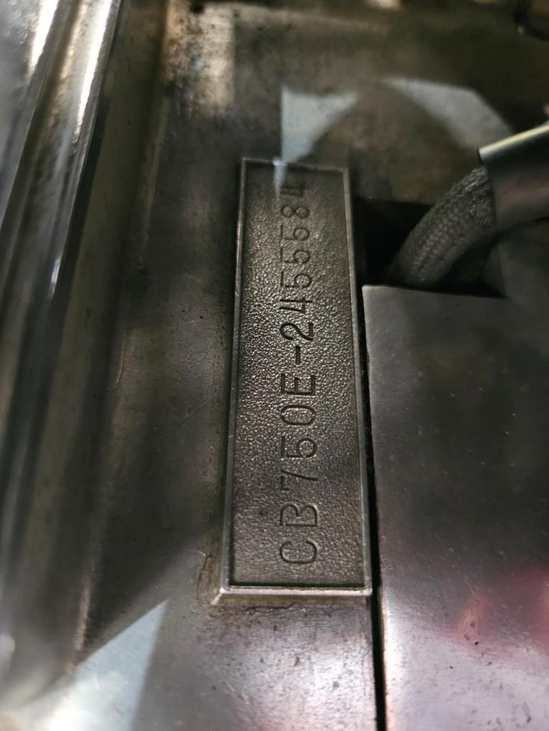 Frame number CB750-2566122 and engine number CB750E-2455584 are both clearly visible and documented in the photos. The vendor confirms matching numbers with the additional note that VIN and engine numbers on CB750s of this era run on separate sequences, both of which are confirmed here. The electrics are reported working with a new battery fitted.