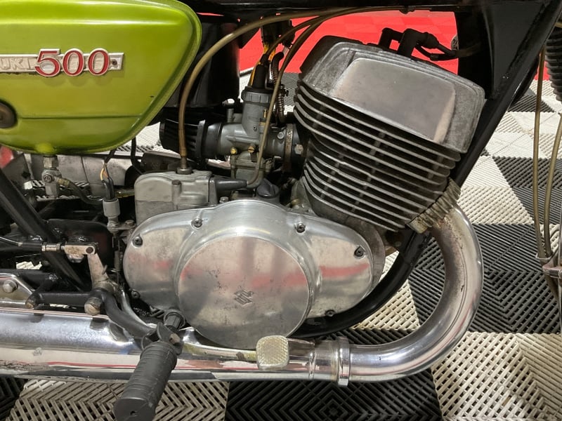 Here is a genuine, numbers-matching 1970 Suzuki T500 Titan that has never been touched up, restored or disguised. The Titan was one of the most significant motorcycles Suzuki ever built. In an era when big-bore two-strokes had a reputation for being temperamental and fragile, the T500 was the exception. It went around the world on long tours, it won endurance races, and it earned a rock-solid reputation as the dependable workhorse of the Japanese two-stroke scene. Today the T500 is one of the most collectible of all Japanese classics, and finding one in this honest, survivor condition is genuinely rare.