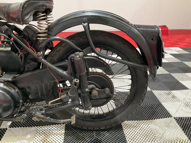 The 1957 BSA M33 Plunger is one of those bikes where the engineering history is written right into the name. The Plunger designation refers to the sprung rear suspension, a system of coiled plunger units that replaced the rigid frame of earlier models but predated the swingarm designs that would become standard through the late 1950s. By 1957 BSA was already offering swingarm models, which makes this M33 Plunger something of a transitional piece. It is historically significant and increasingly rare, as many were upgraded or scrapped when swingarm conversions became popular.
