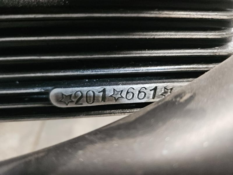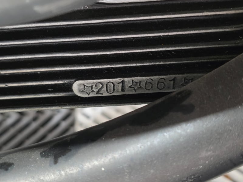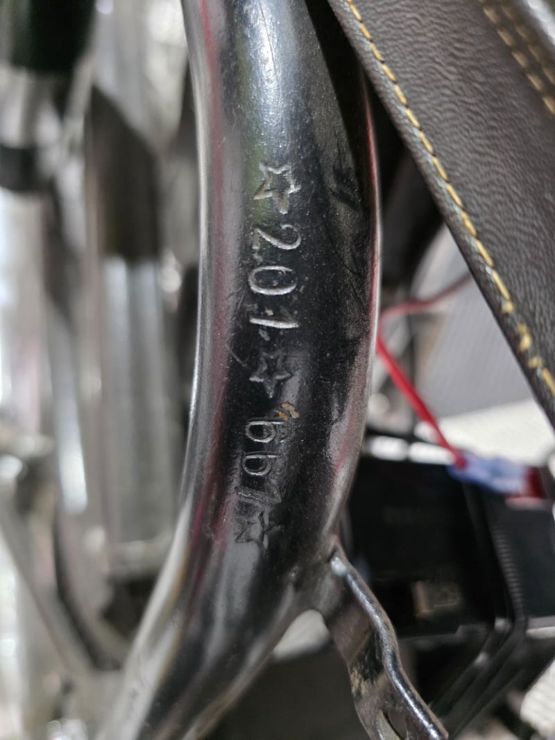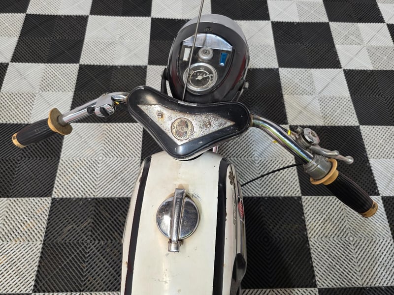 The positives are real. The bike is complete and largely original. Frame number 201/661 and engine number 201/661 match, both clearly stamped and unaltered. The chrome front fender is still bright. The tank stripes and Super 202 script badge are intact and distinctive. The vendor reports it runs well with a new battery, and the electrics are functioning. There is a Dolomiti Touring Club badge on the rear, suggesting this bike has some Italian club history behind it.