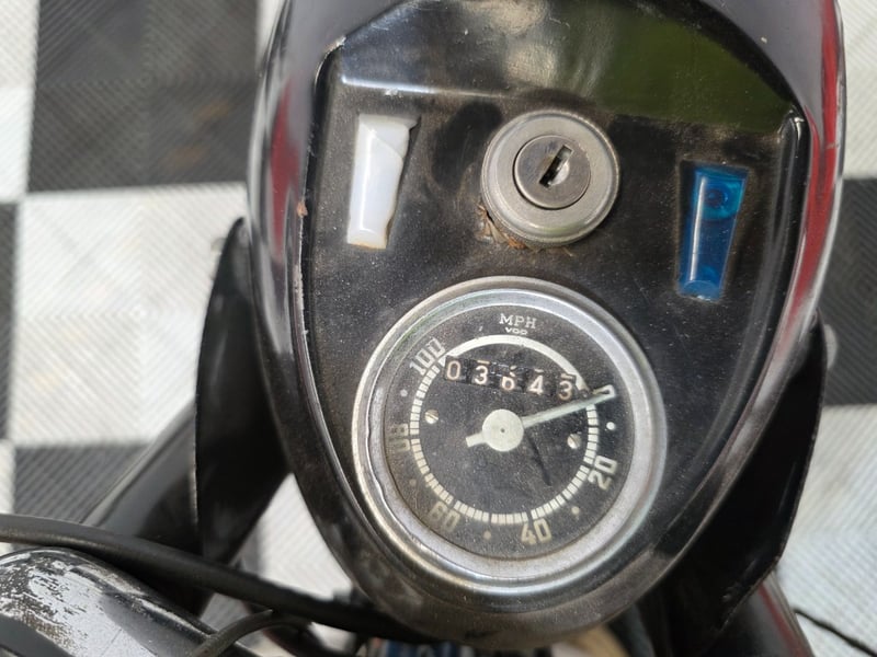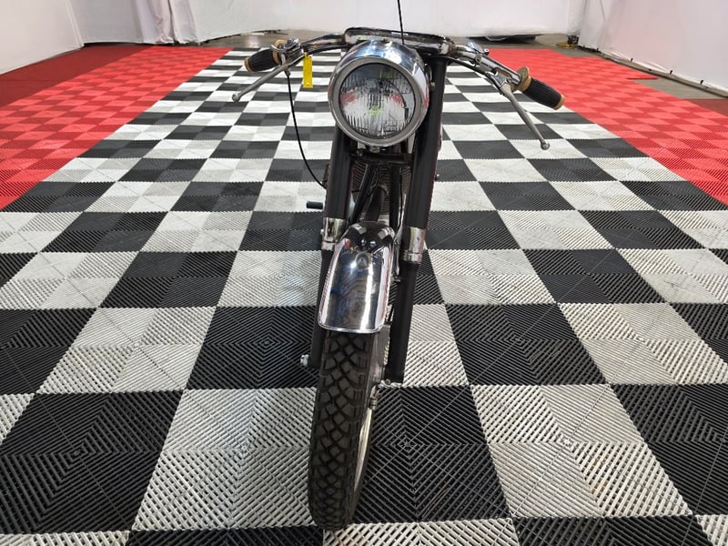 This 1966 Gilera Super 202 is a rare find at any auction. The 200cc air-cooled four-stroke single is a compact, dependable unit typical of mid-1960s Italian engineering at its practical best. The whole bike has that purposeful elegance of period European lightweights, a style that has aged extremely well. The VDO speedometer shows 3,643 miles, and the overall presentation is consistent with a low-mileage machine that has been stored rather than thrashed.