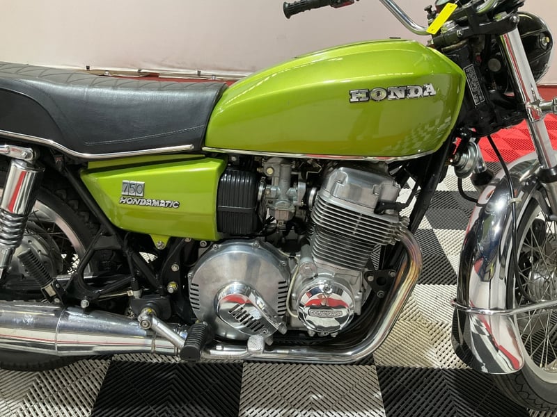 1976 Honda CB750A A rare and unusual variant of Honda’s legendary four-cylinder motorcycle, this 1976 Honda CB750A is finished in Green and shows an indicated 14,435 miles. The CB750A stands apart from the standard CB750 range thanks to its distinctive automatic transmission, making it one of the most unique motorcycles produced by Honda during the 1970s. Powered by Honda’s renowned 750cc inline four-cylinder engine, the CB750A features the innovative “Hondamatic” automatic transmission, designed to offer smooth and effortless riding without the need for a traditional clutch. The bike is equipped with electric start and also features an emergency kick starter stored under the seat, an unusual and practical feature for the model. Honda CB750A Model History Introduced in the mid-1970s, the CB750A “Hondamatic” was Honda’s attempt to make large-capacity motorcycles more accessible and easier to ride. Using a torque-converter automatic transmission, the CB750A eliminated clutch operation while still retaining the performance and smoothness of the iconic CB750 inline-four engine. Produced in relatively small numbers compared with the standard CB750 models, the Hondamatic versions are now considered rare and highly collectible examples of Honda’s engineering experimentation during the golden age of Japanese motorcycles. Description / Extras Vendor advises this example presents well with: • Electric start • Emergency kick starter located under the seat • New battery • Electrics in working order • Carry rack fitted • Original alloy rims Paint, chrome and alloy components are described as being in excellent condition. The motorcycle will require new tyres. Specifications Year: 1976 Make: Honda Model: CB750A Body: Motorbike Drive Type: Chain Driven Odometer: 14,435 Miles Engine: 750cc Inline 4-Cylinder Petrol Transmission: Automatic (Hondamatic) Colour: Green Seats: 2 VIN: CB750A-7002085 / 6ZZ00CB7502566122 Engine No: CB750AE-7002151 A rare Hondamatic CB750 offering an interesting and collectible chapter in Honda’s legendary superbike history. SOLD UNREGISTERED Key #F37