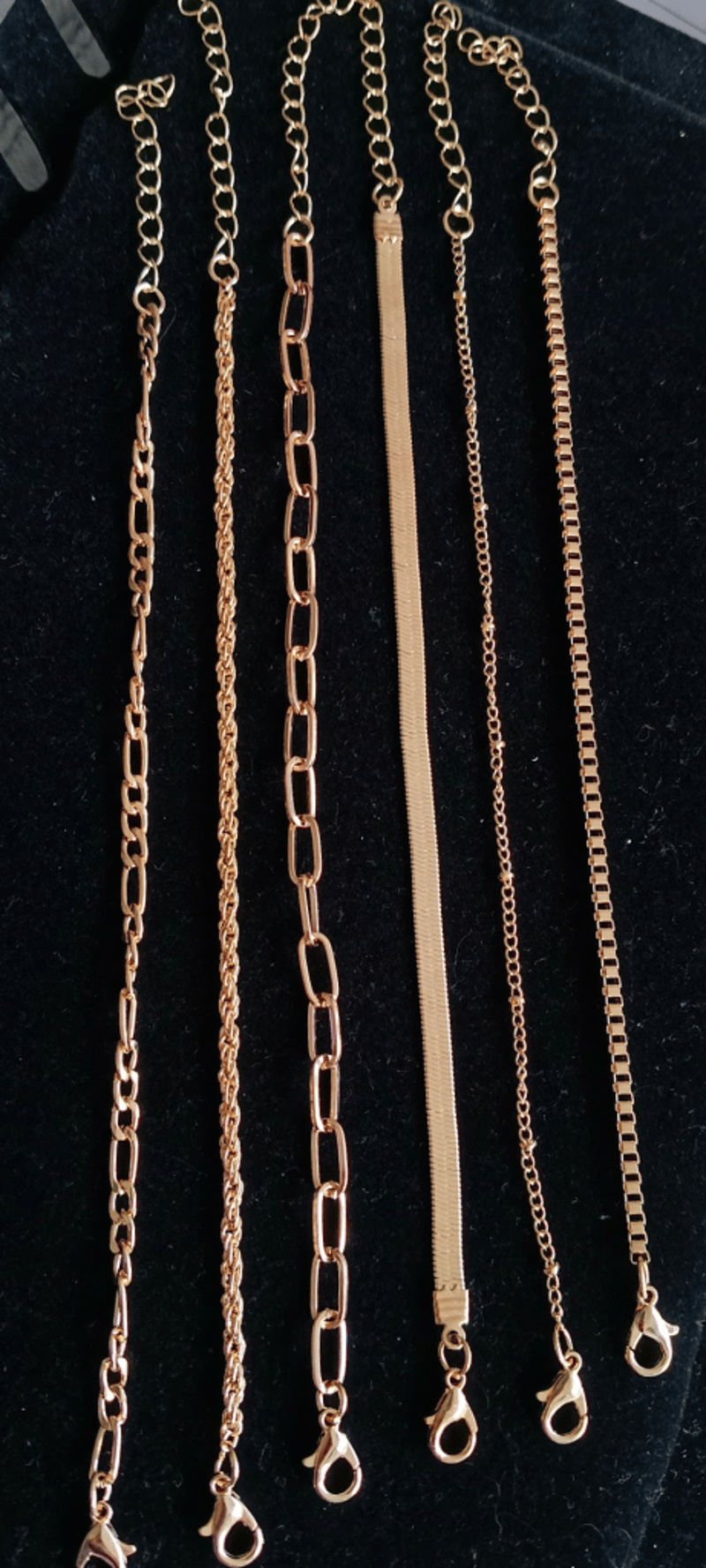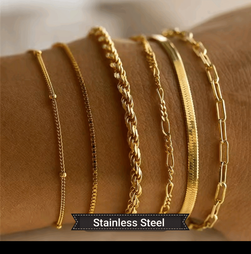 6 X ASSORTED GOLD PLATED STAINLESS STEEL BRACELETS