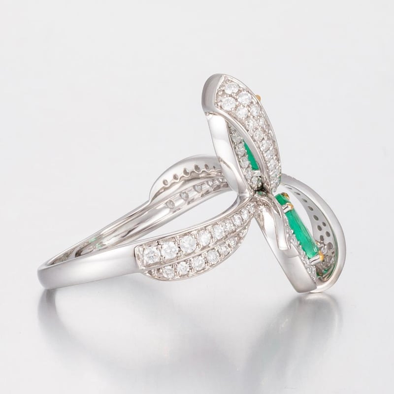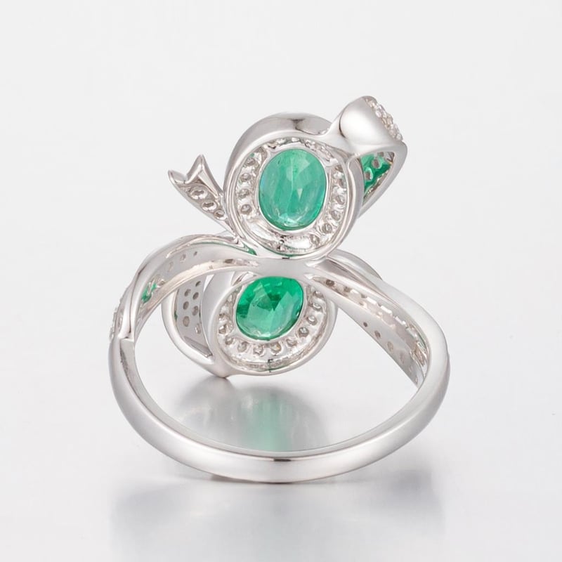 14CT WHITE GOLD ZAMBIAN EMERALD AND DIAMOND COCKTAIL RING