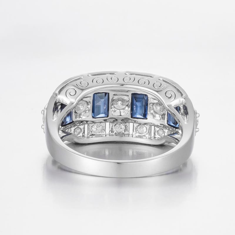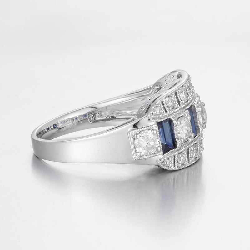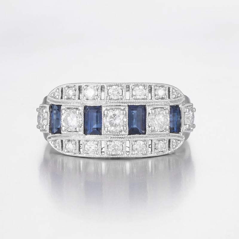14CT WHITE GOLD AUSTRALIAN SAPPHIRE AND DIAMOND ART DECO STYLE RING