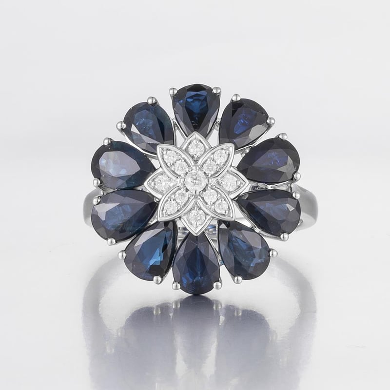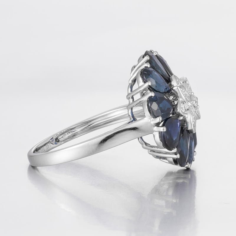 14CT WHITE GOLD AUSTRALIAN SAPPHIRE AND DIAMOND FLORAL COCKTAIL RING