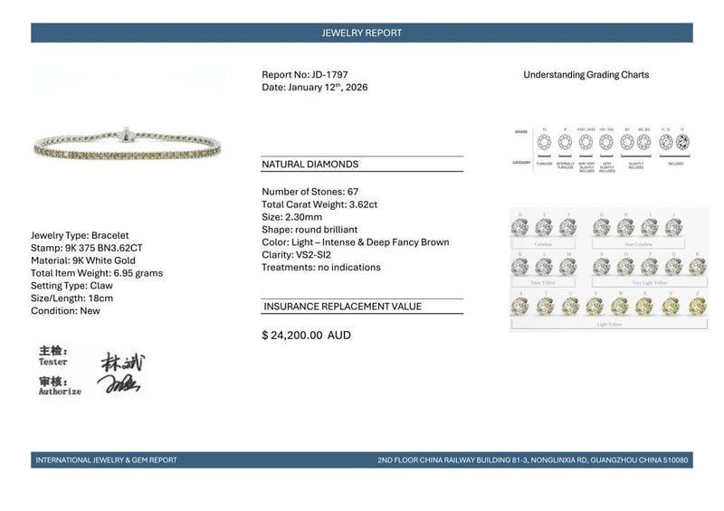 Featuring, 67 Round Brilliant Cut, Light-Intense And Deep Fancy Brown Diamonds (3.62Ct Tdw, Vs2-Si2 Clarity), Claw Set. Bracelet Length Is 18Cm.
