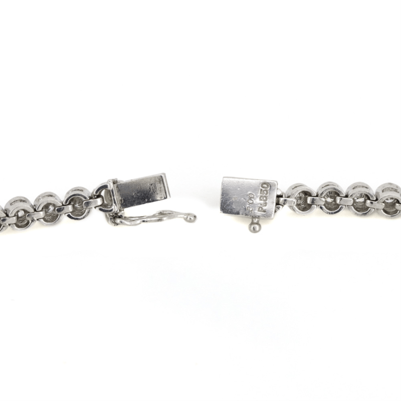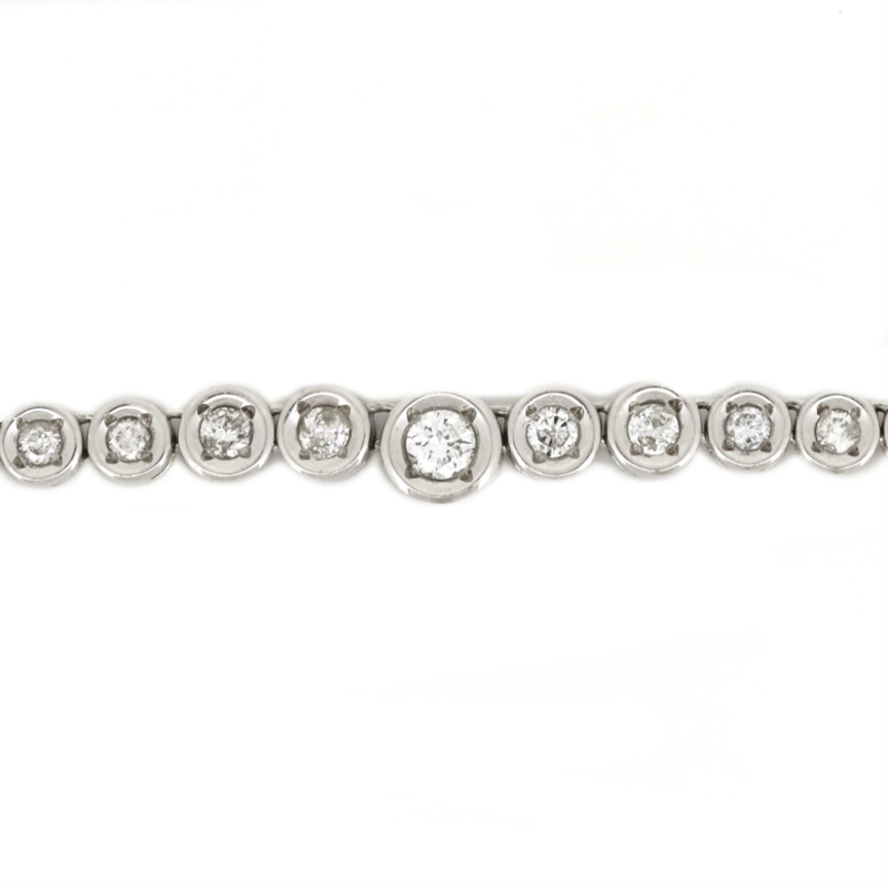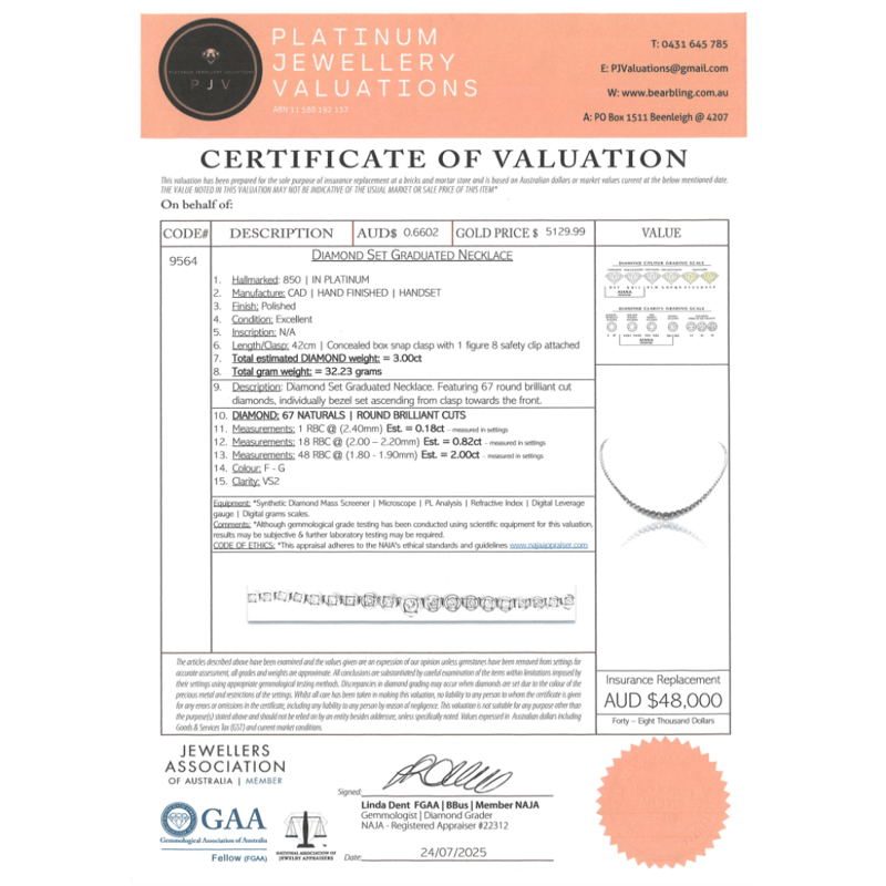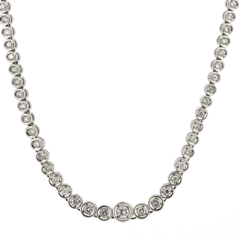 The Necklace Features, 67 Round Brilliant Cut, Diamonds (3.00Ct Tdw, F-G Colour, Vs2 Clarity), Bezel Set. The Necklace Has A Box Clasp With One Safety Latch. Necklace Length Is 42Cm.