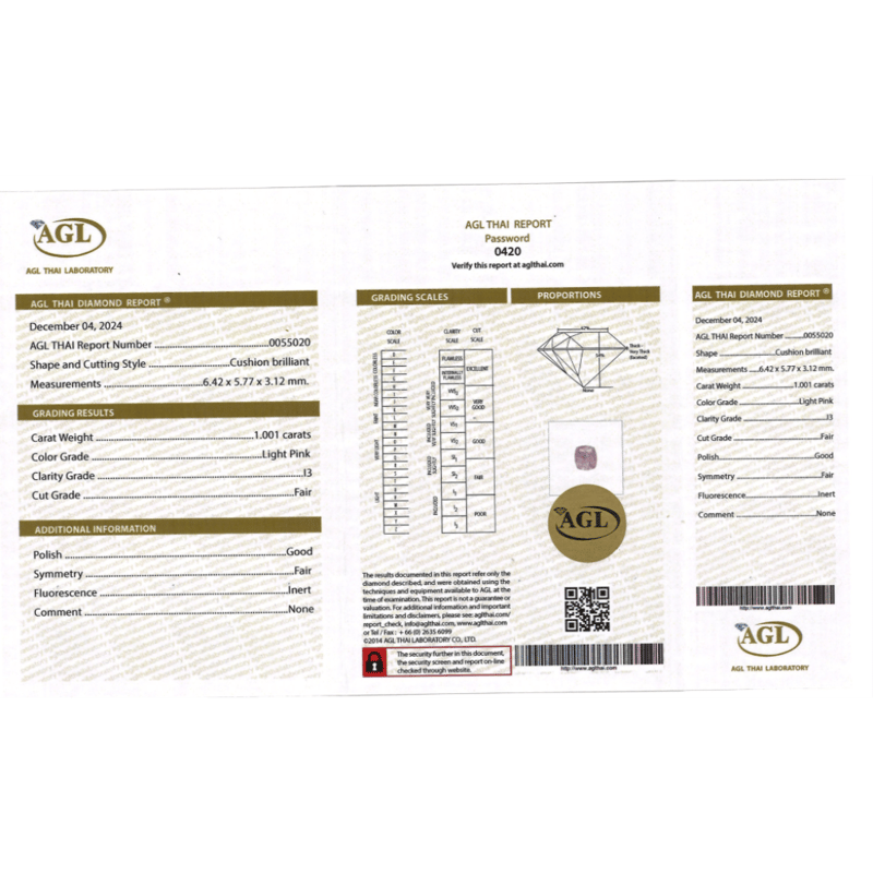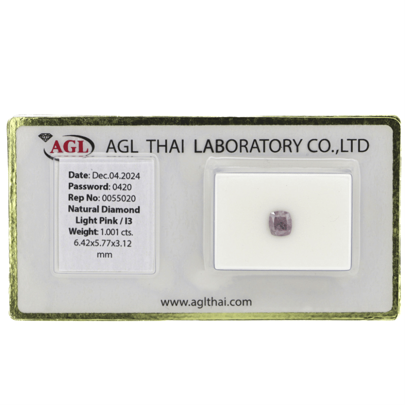 Cushion Brilliant Cut, Light Pink Colour, I3 Clarity, Loose, Unset. Stone Comes Sealed With Agl Report: 0055020.