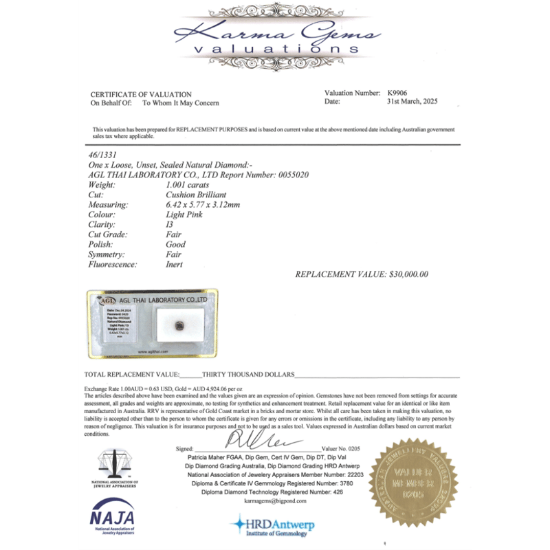 1.001CT CERTIFIED, NATURAL PINK DIAMOND