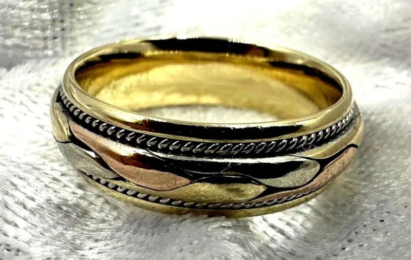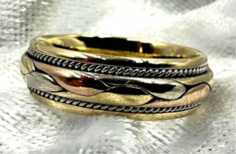 14k White/yellow/rose Gold Tri Tone Ring With Milgrain.
