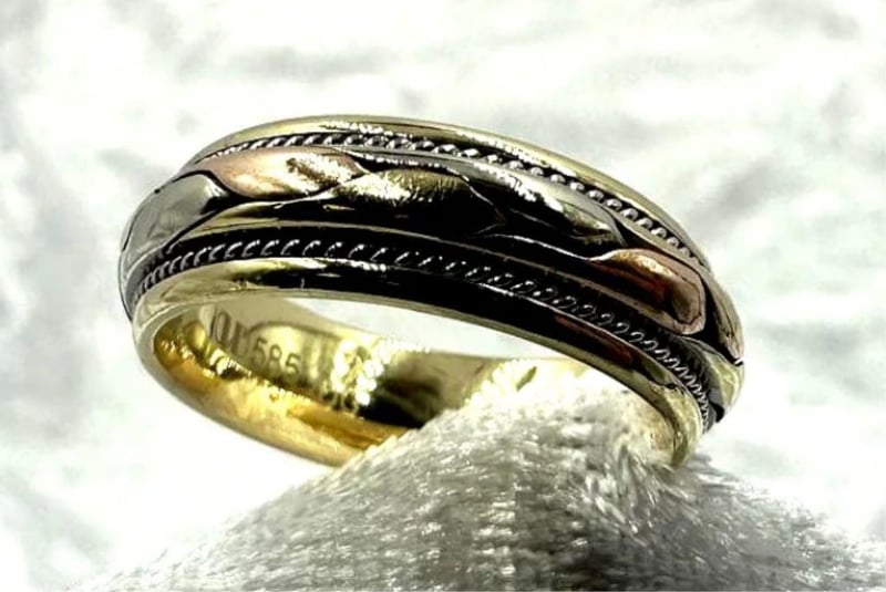 14k Yellow Gold Inner And Sides, With Tri Tone Centre In A Rope Design.