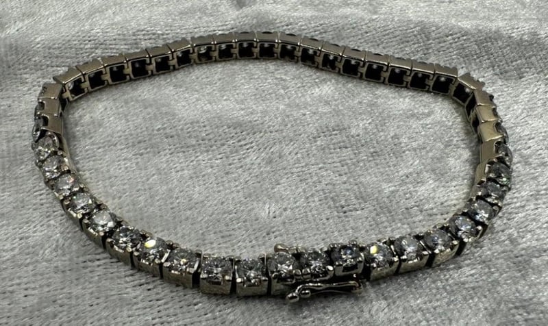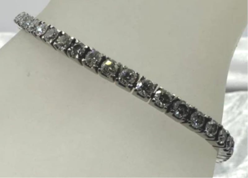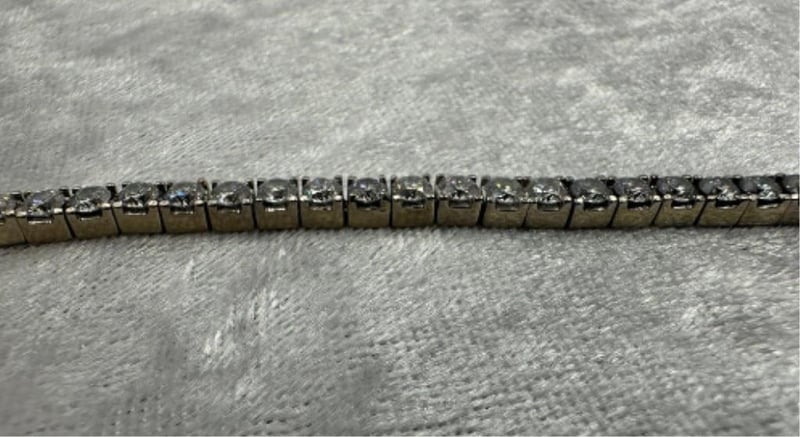 18K WHITE GOLD 6.44 TCW DIAMOND BOX TENNIS BRACELET Round brilliant natural mined diamonds. Diamond quality: F-G colour and SI1 clarity minimum. 46 x 0.14 ct rd brilliant stones. 6.44 Total carat weight Setting material: 18K white gold Chain length: 17.5cm 14.5 grams weight Manufacture type: Casting and hand finished. CROSSDOCK 163051+5