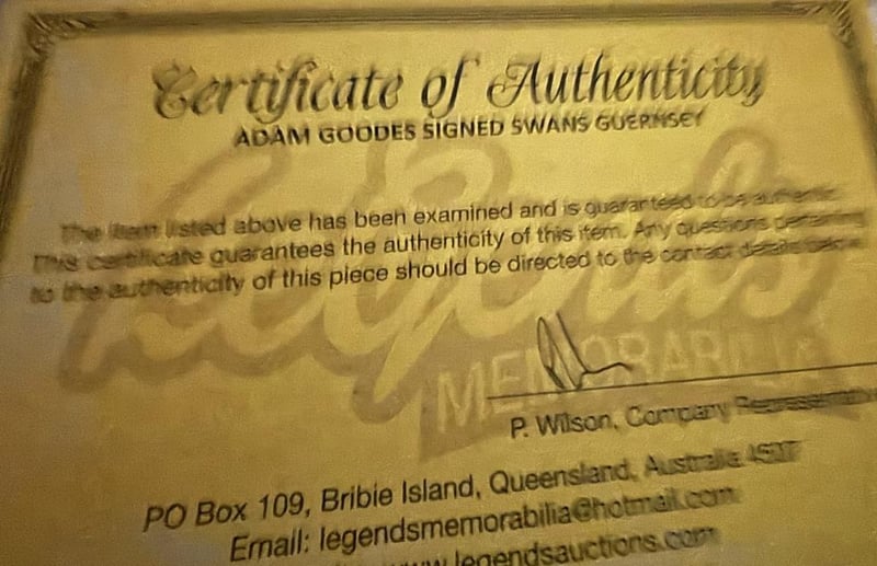 Adam Goodes Personally Signed Swans Guernsey. The Guernsey Is Size L.The Item Is Accompanied By A Certificate Of Authenticity.