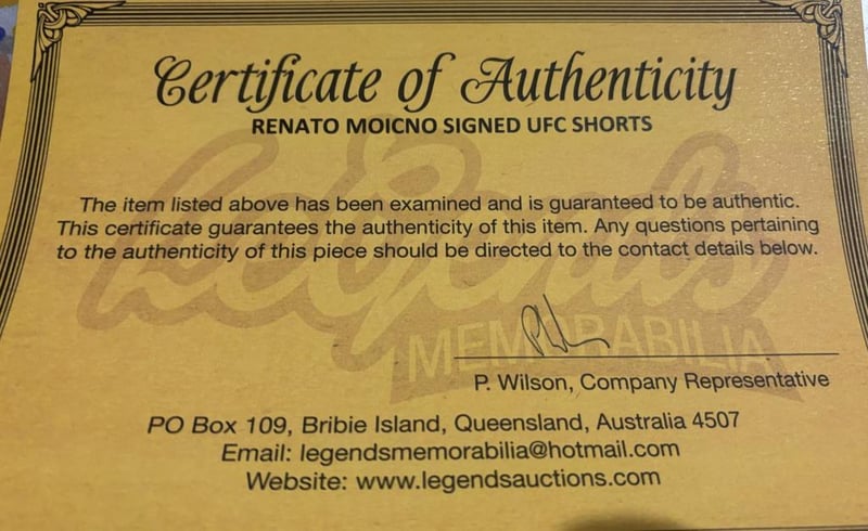 Renato Moicna Personally Signed Ufc Fight Shorts. The Item Is Accompanied By A Certificate Of Authenticity.
