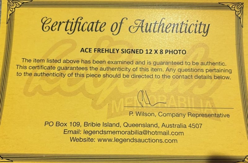 KISS ACE FREHLEY SIGNED & FRAMED PHOTO
