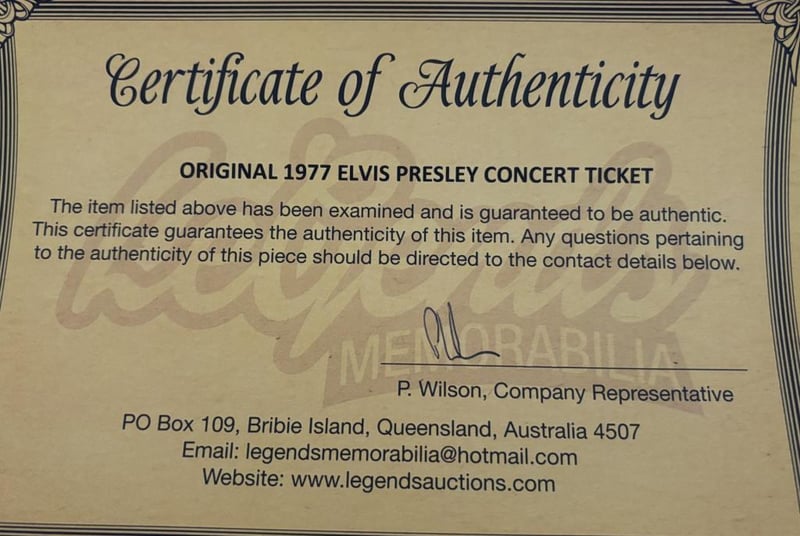 Elvis Presley Unused 1977 Concert Ticket. The Ticket Was For A Concert A Month After Elvis Passed Away In August 1977. The Item Is Accompanied By A Certificate Of Authenticity.