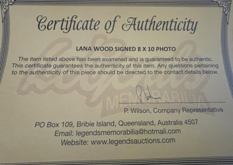 Lana Wood Personally Signed 8 X 10 Photograph.The Item Is Accompanied By A Certificate Of Authenticity.