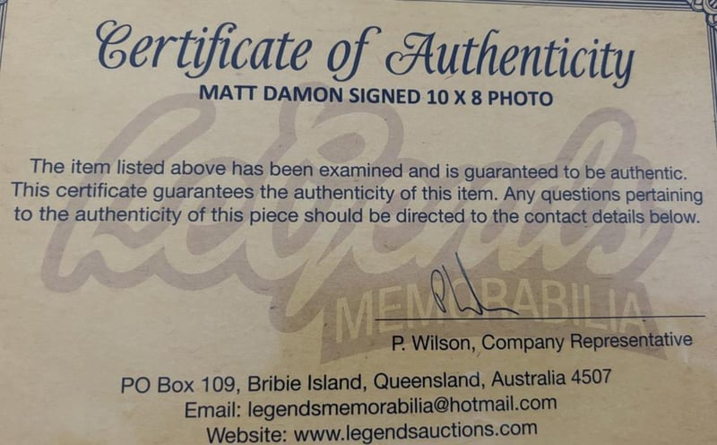Matt Damon Personally Signed 10 X 8 Photograph.The Item Is Accompanied By A Certificate Of Authenticity.