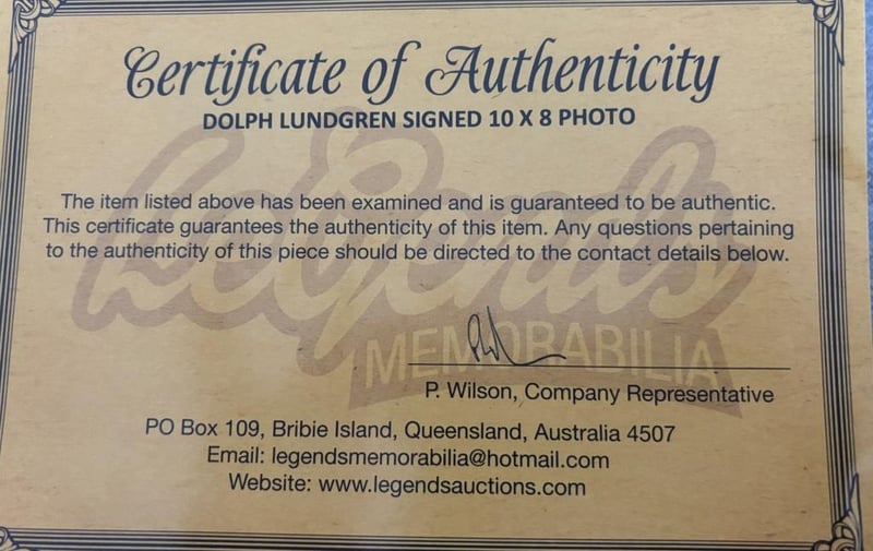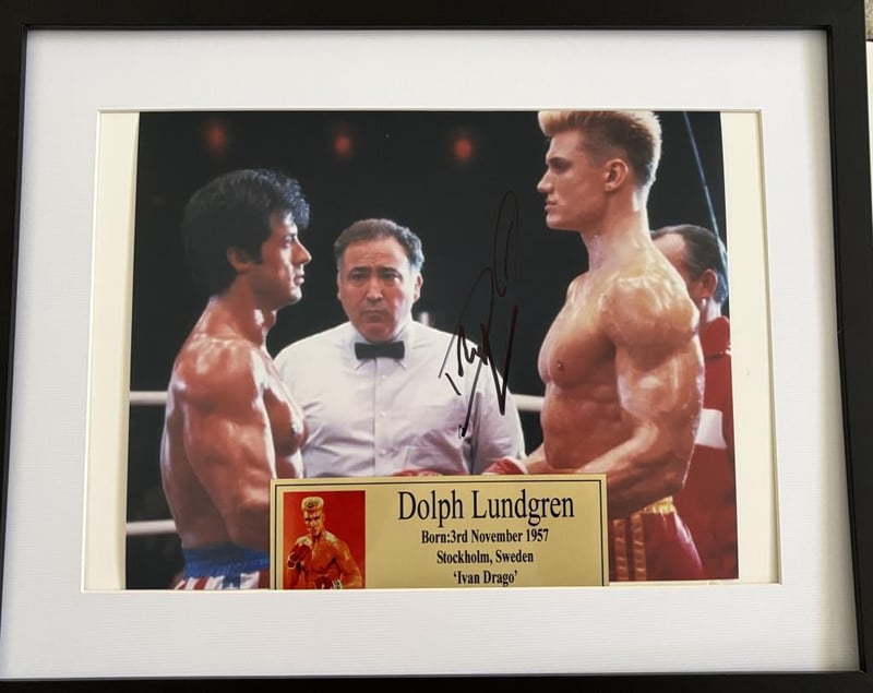 Dolph Lundgren Personally Signed And Framed (With Plaque) 'Ivan Drago'. Measuring 14 X 11, This Is Ready To Hang. The Item Is Accompanied By A Certificate Of Authenticity.