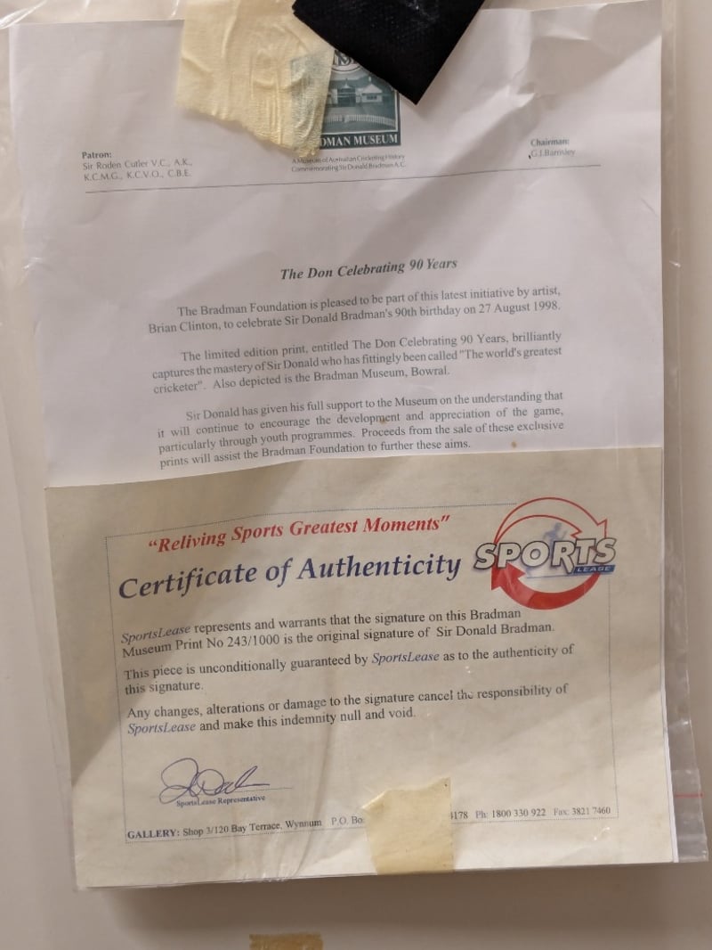 Signature Details: Signed Lower Right by Artist, Lower Left by Donald Bradman
