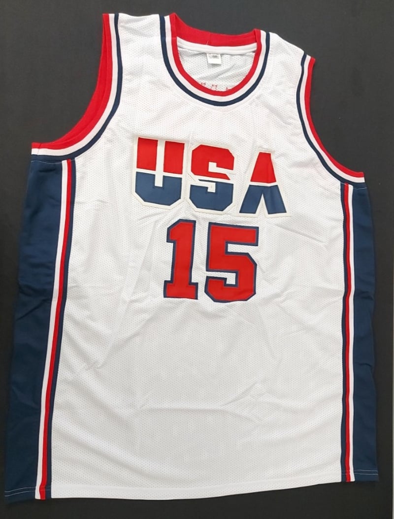 MAGIC JOHNSON USA SIGNED WHITE JERSEY