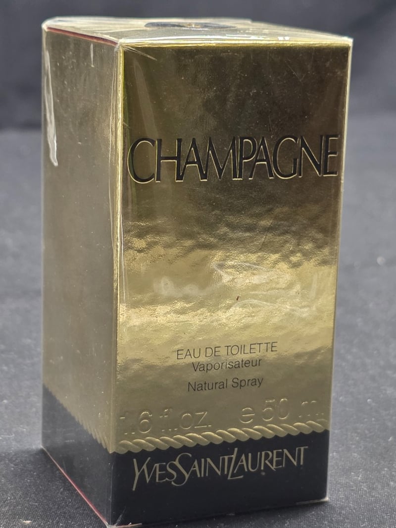 YVES SAINT LAURENT CHAMPAGNE EAU DE TOILETTE 250ML VINTAGE FRAGRANCE Item Size: Height: 10cm, Width: 5cm, Depth: 7cm, Weight: 0.1Kg Vintage Yves Saint Laurent Champagne Eau De Toilette In Original Gold Foil Box, 250Ml Natural Spray Atomizer. Classic 1980S-90S Fragrance Presentation With Intact Packaging, Collectible Designer Perfume In Original Sealed Condition. Condition: Good - Refer To Images 584542+15