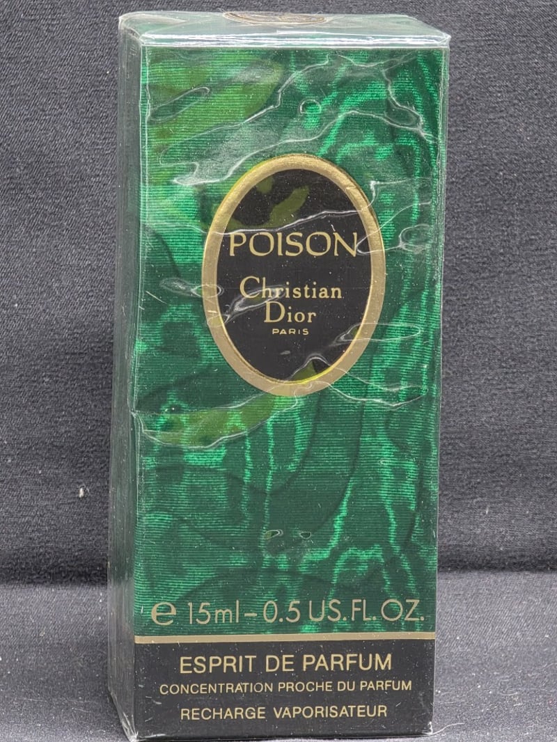 VINTAGE CHRISTIAN DIOR POISON ESPRIT DE PARFUM 15ML BOTTLE Item Size: Height: 10cm, Width: 4cm, Depth: 2.5cm, Weight: 0.1Kg Vintage Christian Dior Poison Esprit De Parfum, 15Ml (0.5 Us Fl.Oz) Spray Atomizer In Original Green Silk-Textured Packaging With Gold Oval Label. Concentration Proche Du Parfum Formulation. Collectible Fragrance From The Iconic 1985 Poison Line. Condition: Fair - Refer To Images 584542+17